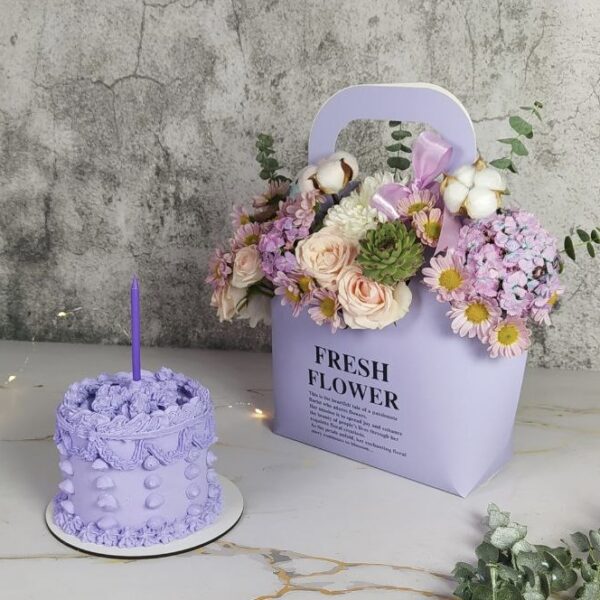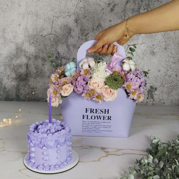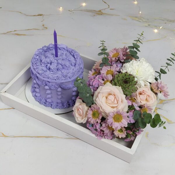 باکس ترکیبی گل و کیک نیم کیلویی مناسب روز مادر